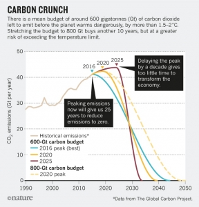 If global emissions start rapidly falling in 2020, the world will have twenty years to decarbonise. But if action is delayed until 2025, that period will reduce to ten.